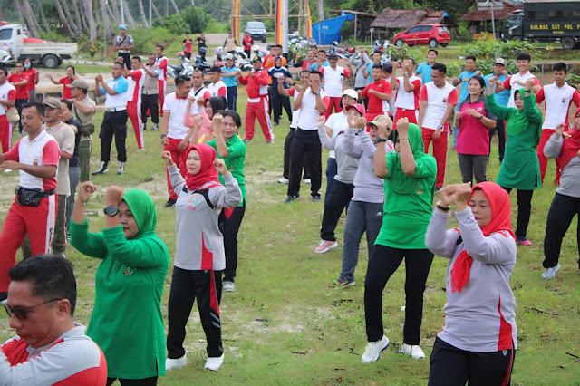 Olah raga bersama yang melibatkan 200 orang lebih ini juga dihadiri Bupati Kepulauan Mentawai Yudas Sabaggalet, Sekda Martinus Dahlan, Dandim, Basarnas, Kadis Kesehatan, para PA Kodim, para PJU Polres, seluruh anggota Polres, Dishub, Pol PP, Bhayangkari, Persit dan lainnya.