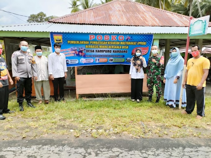 PARIAMAN KOTA, PIONIR---Dalam upaya pencegahan dan pengendalian penyebaran virus covid 19 didesa Kampung Kandang, Aipda Adel Bhabinkamtibmas Desa Kampung Kandang bersama Kepala Desa meresmikan Posko PPKM Desa Kampung Kandang, Rabu, 05 mei 2021, sekira pukul 12.15 Wib.